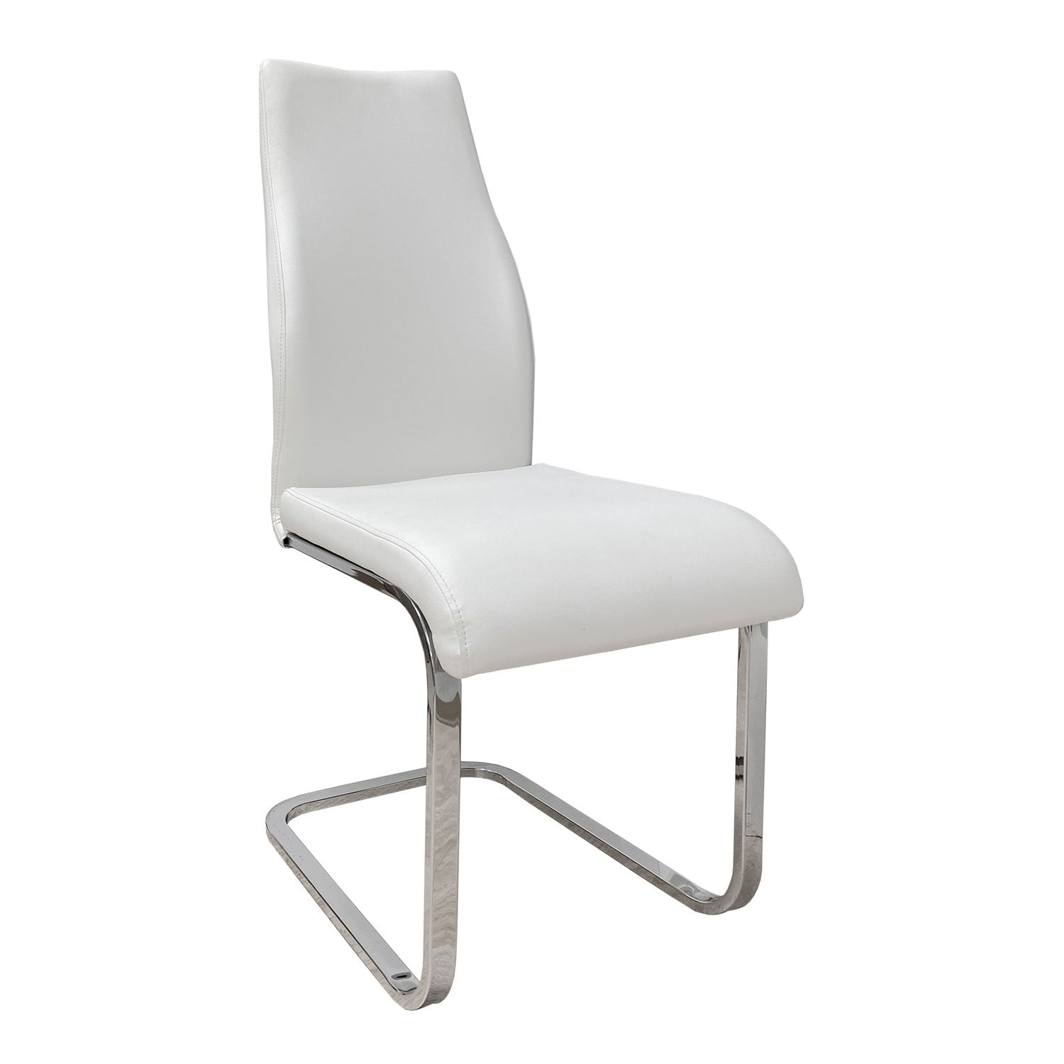 Constructed of a metal frame with a sleek chrome finish, this streamlined piece features a slightly curved backrest and a square, foam-padded seat for a firm feel. Faux leather upholstery in a neutral tone wraps around the design, offering an affordable alternative to genuine leather that’s easy to clean. To help protect your floors, the base features an embedded plastic ring.