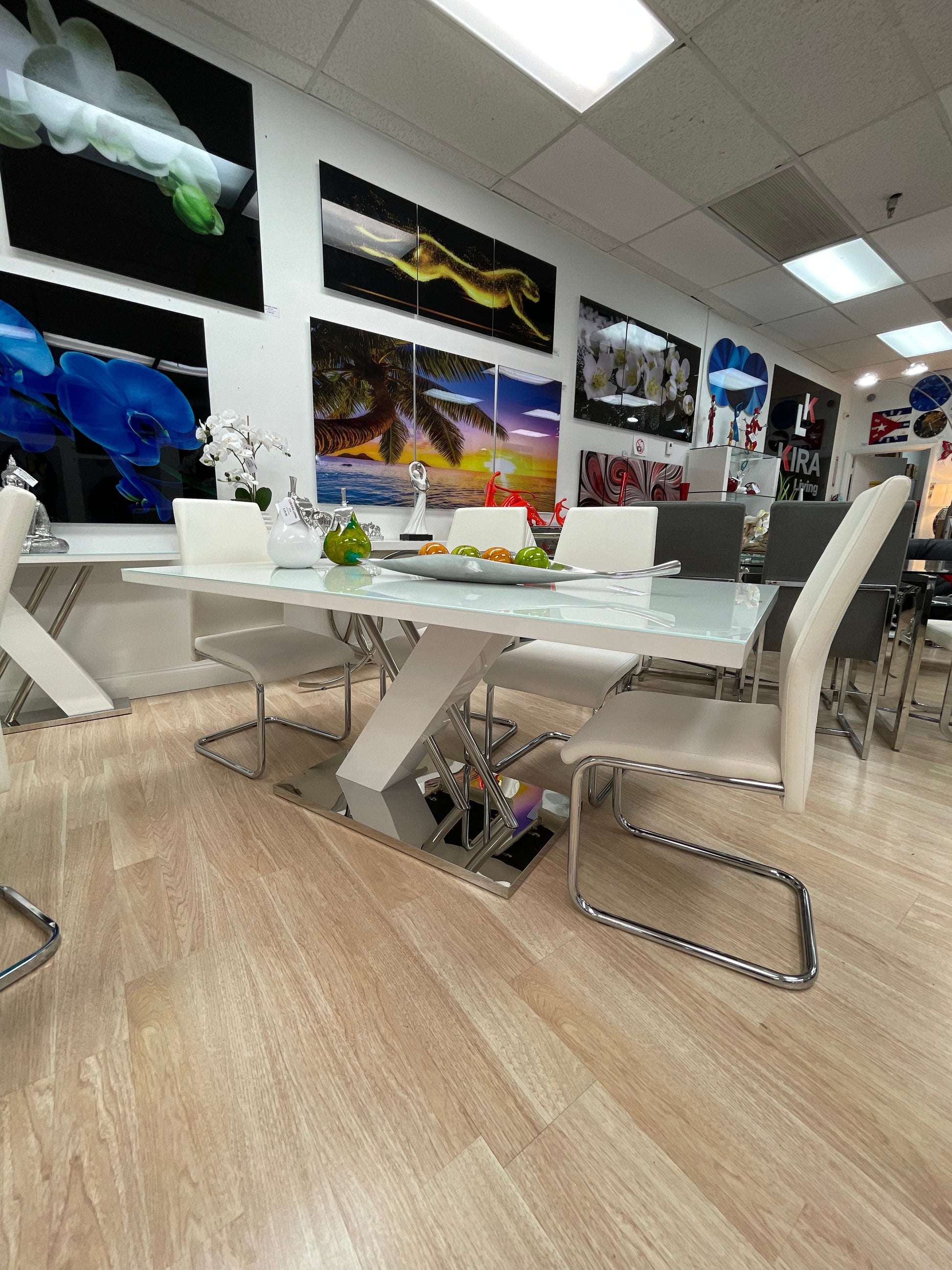 - Chrome Accents: Chrome details and accents on the table's base and legs create a striking contrast with the glossy white finish, delivering a chic and contemporary look.
