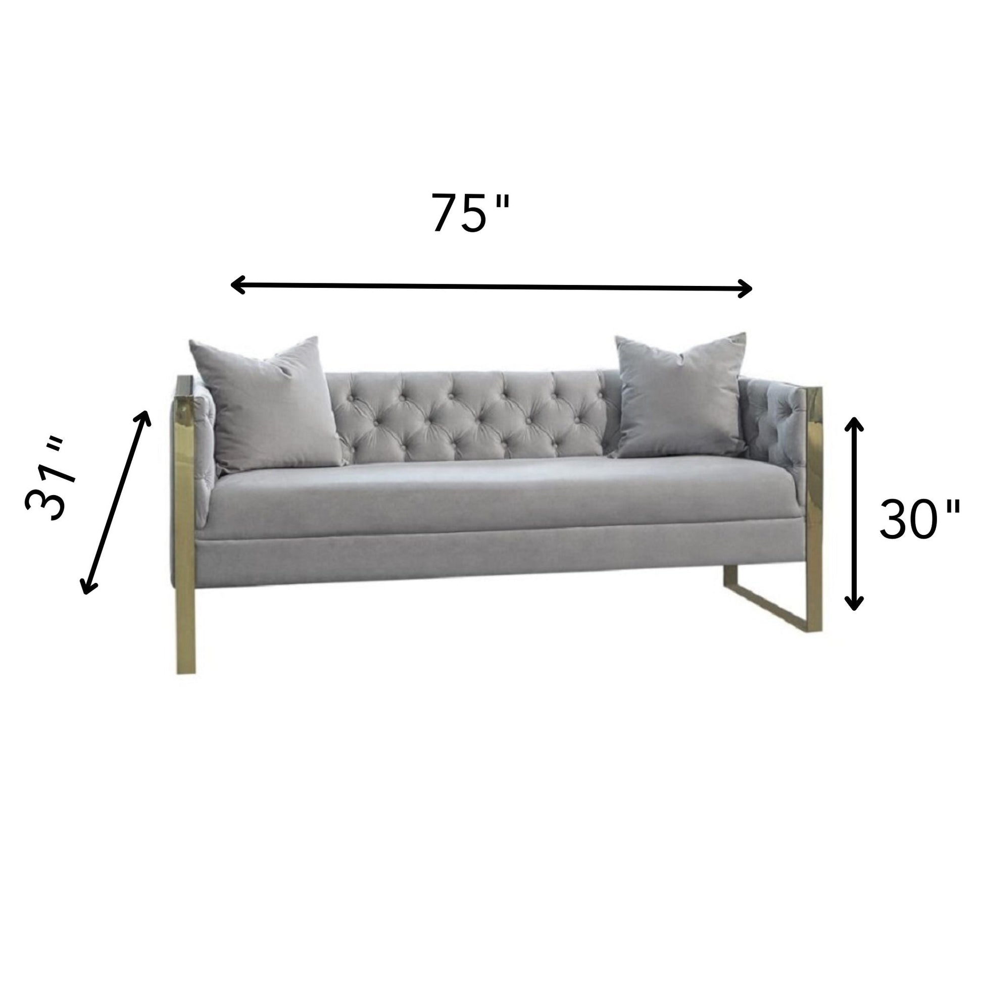 - A Feast for the Senses: The mix of gold and grey, metal and soft fabric, creates a captivating visual and tactile experience. Our Grey Velvet Loveseat is a treat for the senses, promising a blend of modern aesthetics and cozy comfort.