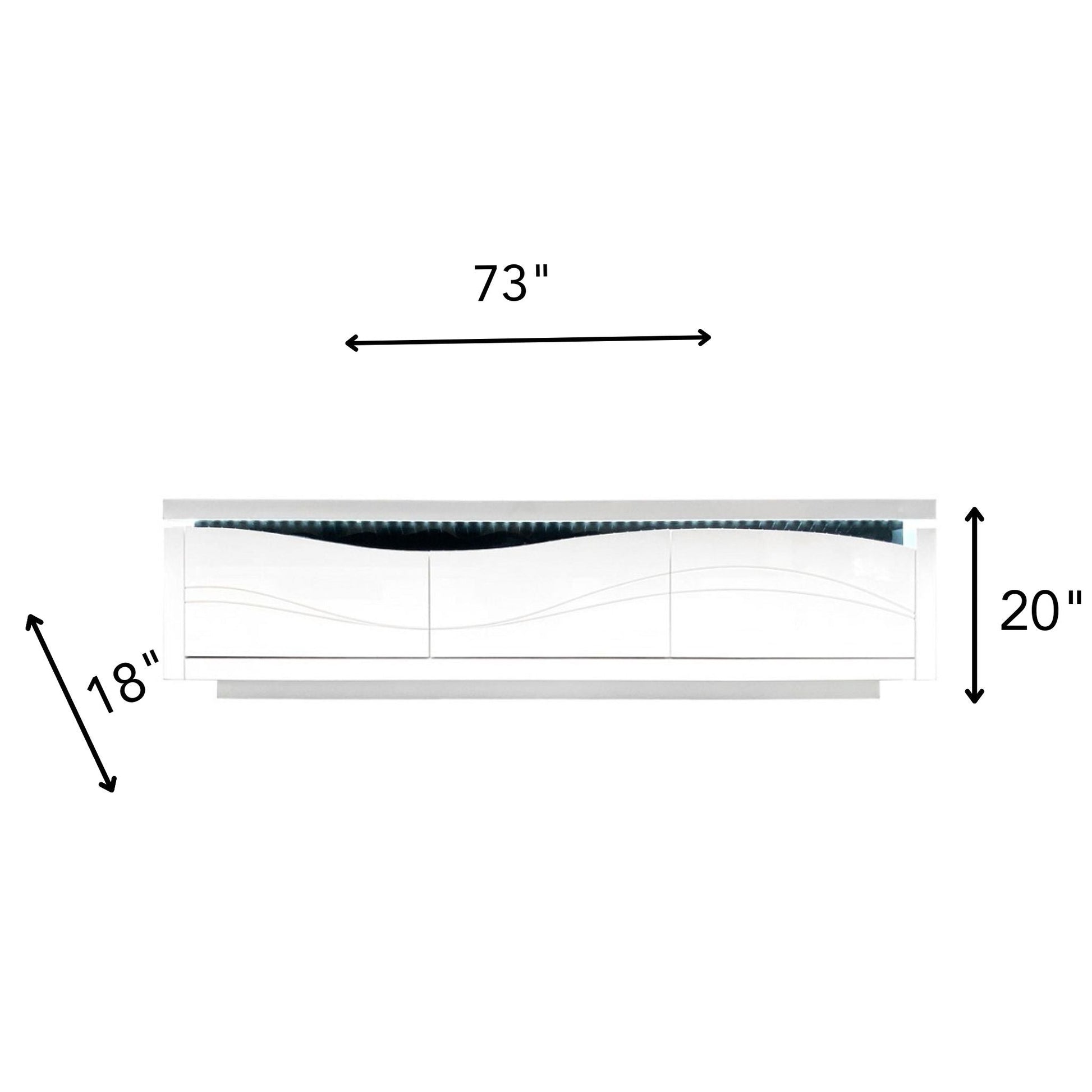 - Glossy White Finish: The TV stand boasts a sleek glossy white finish, adding a touch of modern elegance to your living space and seamlessly complementing various decor styles.