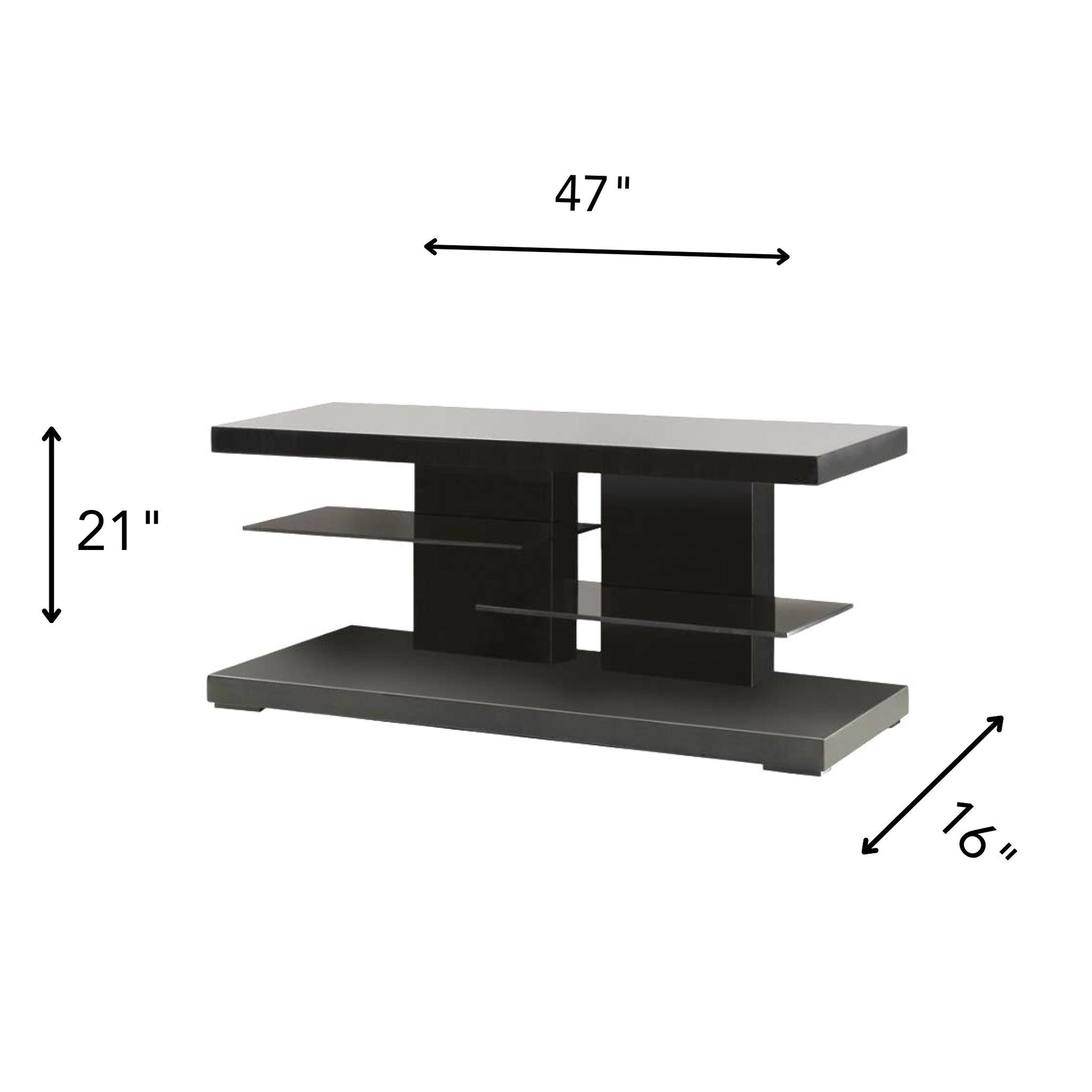 - Two Glass Shelves: With two spacious glass shelves, this console provides ample storage space for your media devices, gaming consoles, or decorative items. The transparent glass not only offers a chic look but also allows for easy access to your devices.