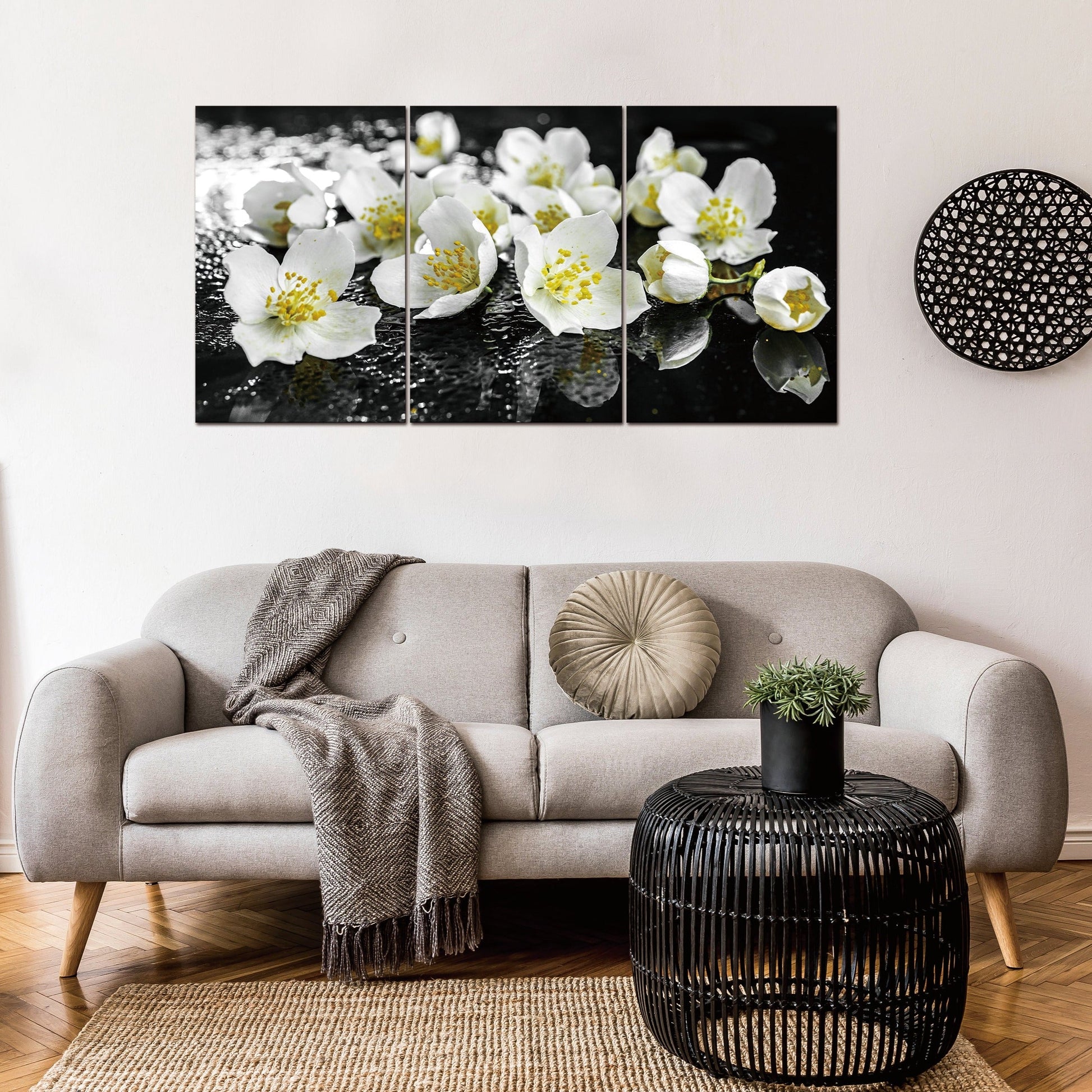 - White Jasmine on Water Acrylic Picture: This exceptional Wall Art beautifully portrays the serene image of white jasmine blossoms gently floating on calm waters. The tranquil depiction of these delicate flowers and their reflection becomes a captivating focal point in your decor, inviting you to appreciate the beauty of nature.